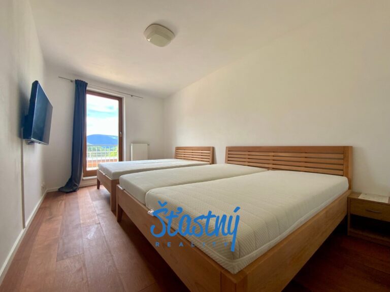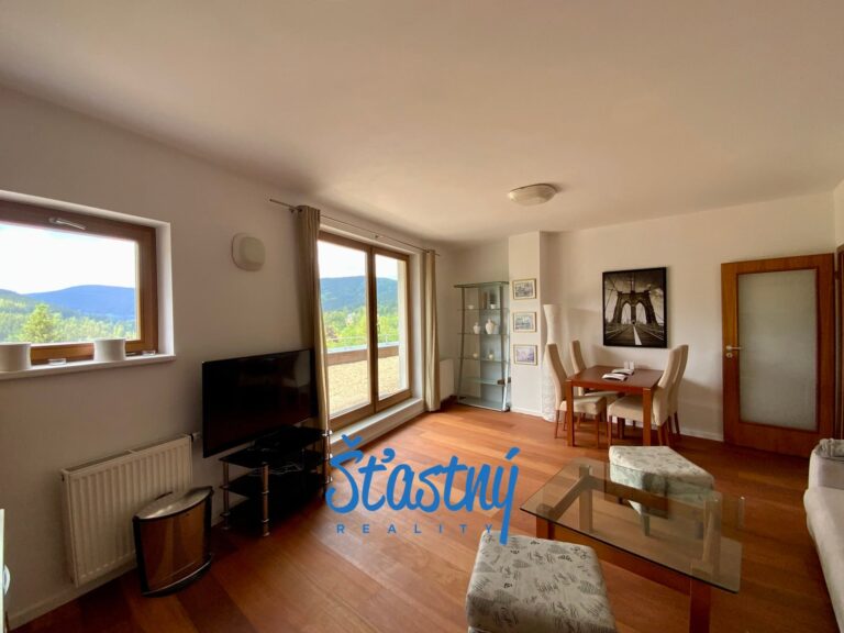 Naše společnost Vám zprostředkuje dlouhodobý pronájem vkusně zařízeného bytu s dispozicí 2+kk o velikosti 55 m2 s výhradním právem užívání dlážděné terasy 13 m2. Byt po renovaci s nádherným výhledem se nachází v 1NP v oblíbeném bytovém domě Michael nad centrem Špindlerova Mlýna. Byt je kompletně vybaven, veškeré kuchyňské spotřebiče, nádobí, povlečeni, ručníky, prostě vše. V bytě je nová podlaha ze dřeva Merbau a nové vybavení ložnice, postele a stolky.