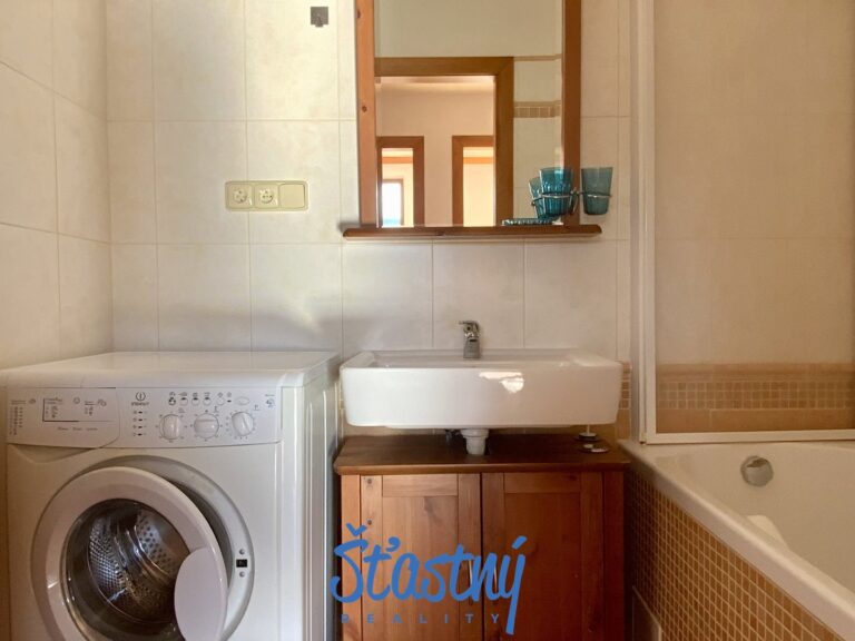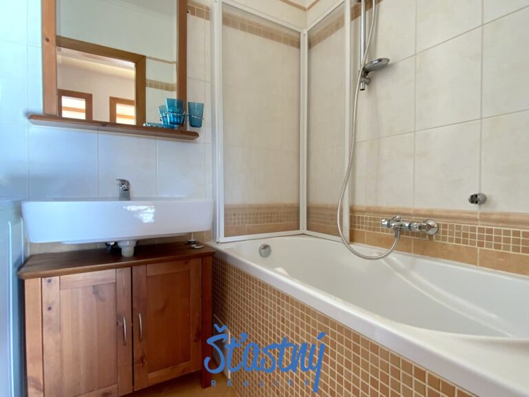 Byt byl zrekonstruovaný – dřevěné dveře, nová okna, na podlahách parkety a dlažba, zděná koupelna s vanou, kde je pračka se sušičkou a samostatné WC.